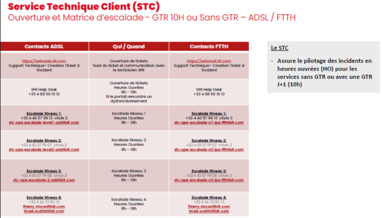 SFR (déclaration d'incident) : 0805 70 10 10 (code opérateur : 2352)